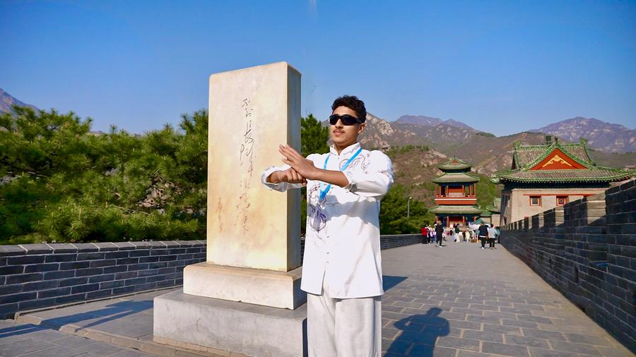 A UAE student performs Chinese Kung Fu at the Juyongguan Great Wall, in Beijing, capital of China, on April 6, 2025. (Xinhua/ Hu Zhenze)