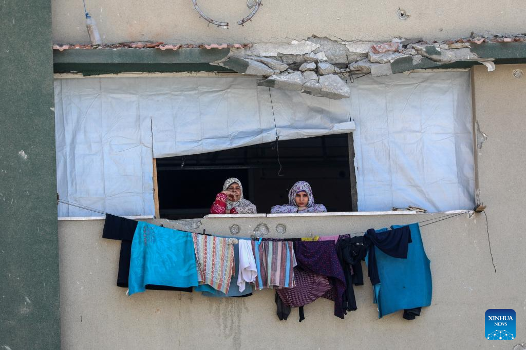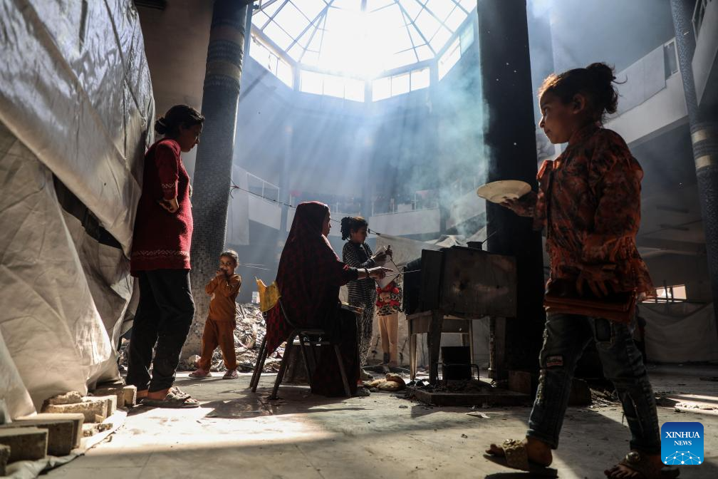 Displaced Palestinians are seen at the Islamic University of Gaza, which was damaged by Israeli bombardment, in Gaza City, April 11, 2025. The Islamic University of Gaza, one of the largest universities in the Gaza Strip, now has turned into a shelter for hundreds of Palestinian families. (Photo by Rizek Abdeljawad/Xinhua)
