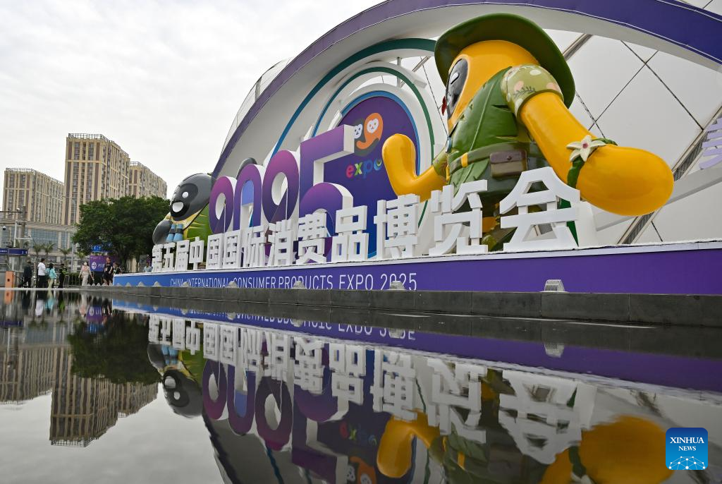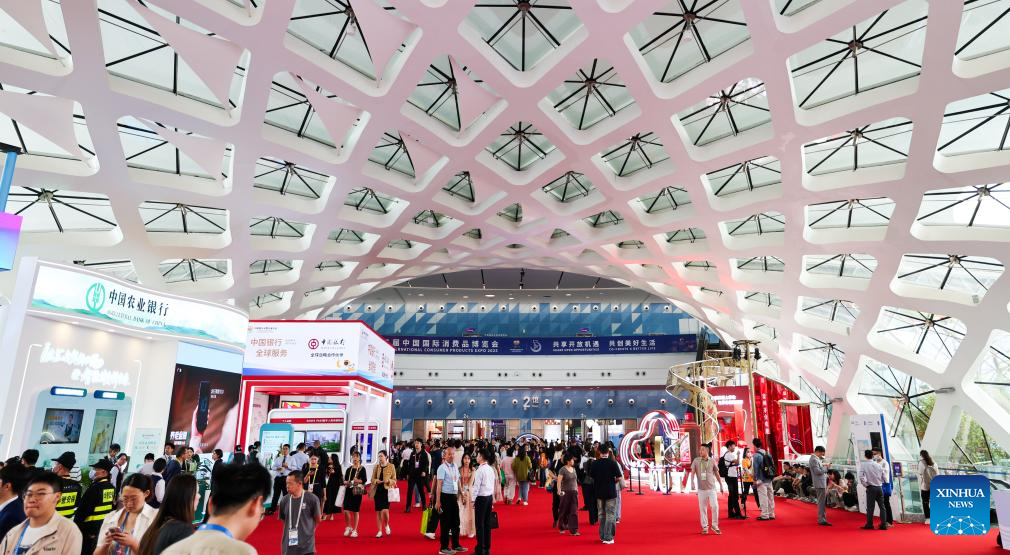 This photo taken on April 13, 2025 shows a scene at the 5th China International Consumer Products Expo (CICPE) in Haikou, south China's Hainan Province. The 5th CICPE runs from April 13 to 18 in south China's island province of Hainan.