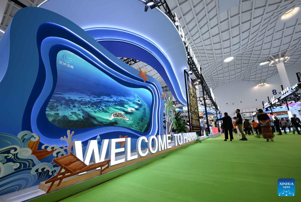 This photo taken on April 13, 2025 shows the Hainan booth at the 5th China International Consumer Products Expo (CICPE) in Haikou, south China's Hainan Province. The 5th CICPE runs from April 13 to 18 in south China's island province of Hainan.