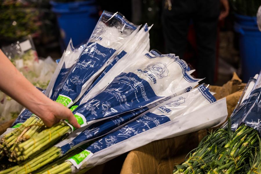 Nguyen Thuy Van, a Vietnamese florist, is pictured at Dounan Flower Market in Kunming, southwest China's Yunnan Province, April 11, 2025. (Xinhua/Chen Xinbo)