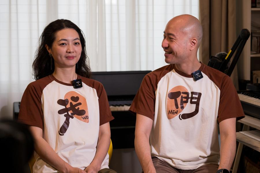Dong Quang Vinh and his wife Mo Shuangshuang receive an interview with Xinhua at home in Hanoi, Vietnam, March 28, 2025. (Xinhua/Zhu Wei)