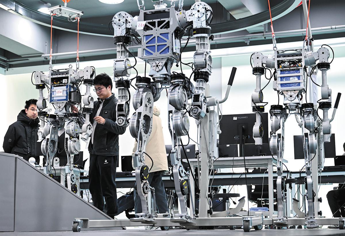 In a cutting-edge facility in Shanghai, engineers are precisely assembling humanoid robots, while rows of newly manufactured units stand ready for quality checks. In an adjacent testing zone, 100 humanoid robots are being trained to perform daily tasks — such as serving tea, folding laundry, and setting tables — in simulated environments ranging from cafes to residential spaces.
