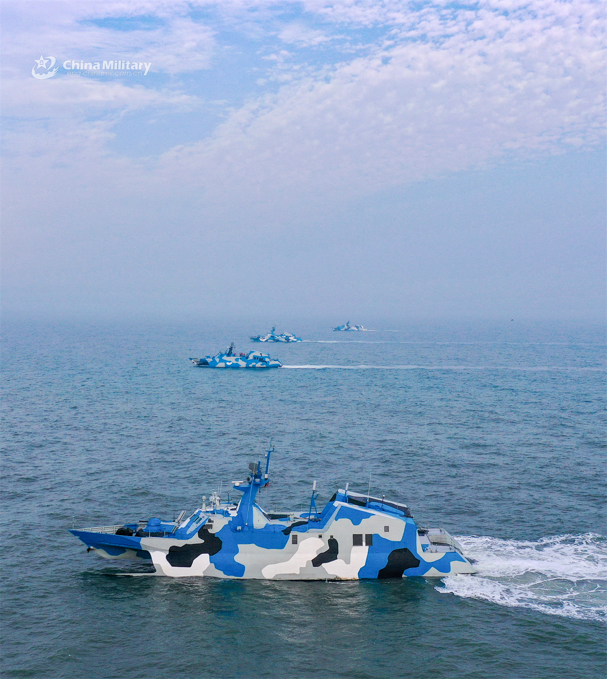 A group of fast attack missile boats attached to the Chinese PLA Navy sail at sea during a maritime training exercise on April 5, 2025. (eng.chinamil.com.cn/Wang Heqiu)