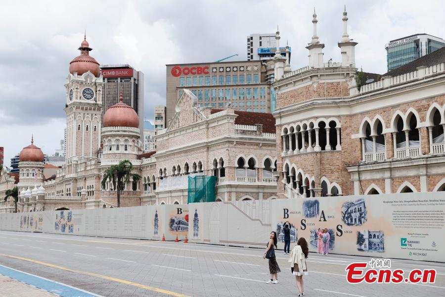 Visitors pose for photos at the historical Dataran Merdeka, or Independence Square, in Kuala Lumpur, Malaysia, April 13, 2025. (China News Service/Han Haidan)