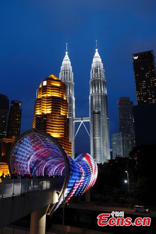 Night scenery of Saloma Link Bridge in Kuala Lumpur, Malaysia, April 13, 2025. (China News Service/Han Haidan)