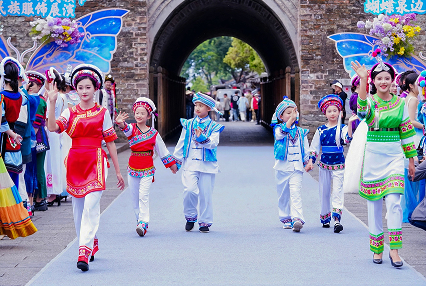 The event featured 74 sets of ethnic attire, including 48 traditional wedding outfits from the Bai, Yi, Lisu and other ethnic groups across 12 counties and cities, as well as 26 creatively designed Bai ethnic garments. The show offered visitors a colorful display of local garment traditions.