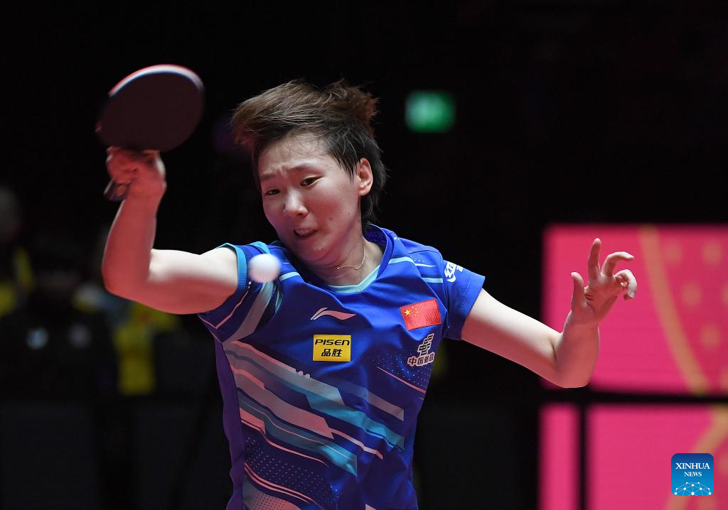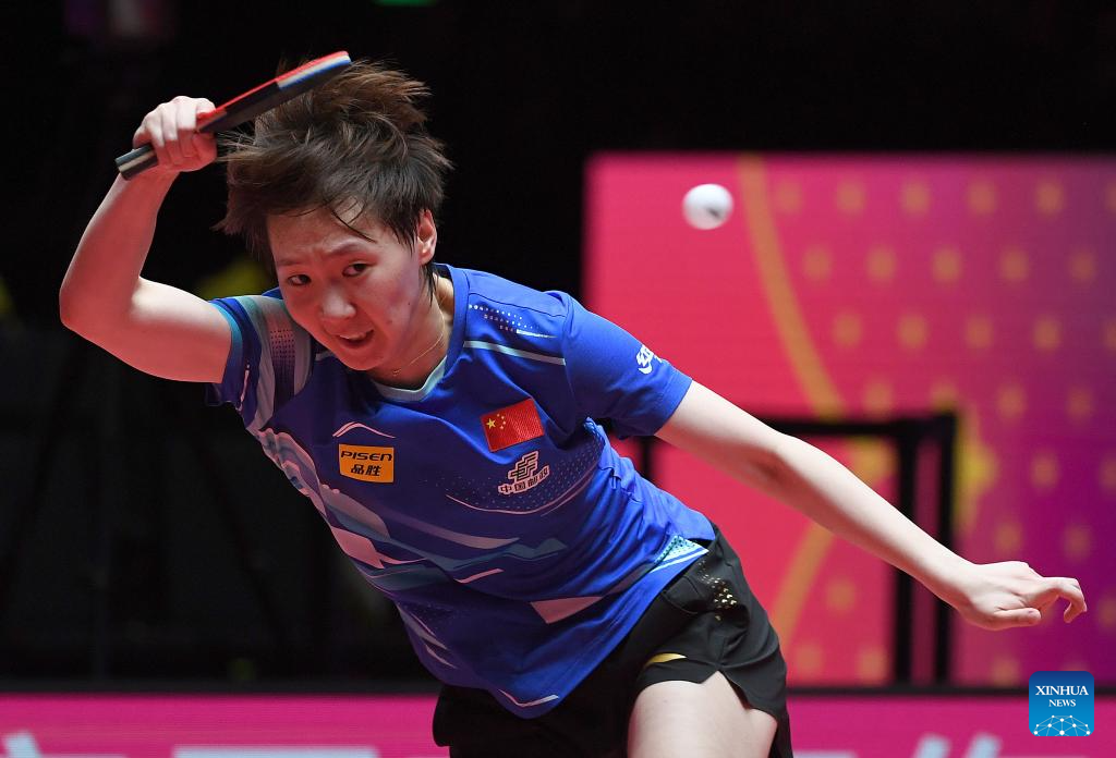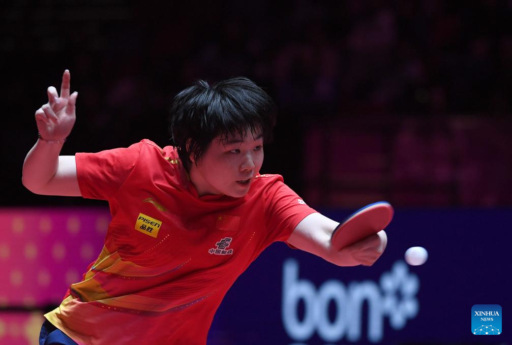 Kuai Man competes during the women's singles quarterfinal match between Kuai Man of China and Wang Manyu of China at the ITTF Men's and Women's World Cup 2025 in Macao, China, April 18, 2025. (Xinhua/Chen Duo)