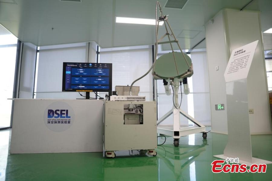 A 3D-printing robot for "lunar bricks" is displayed at China's deep space exploration laboratory, April 18, 2025. (Photo: China News Service/Zhang Jun)