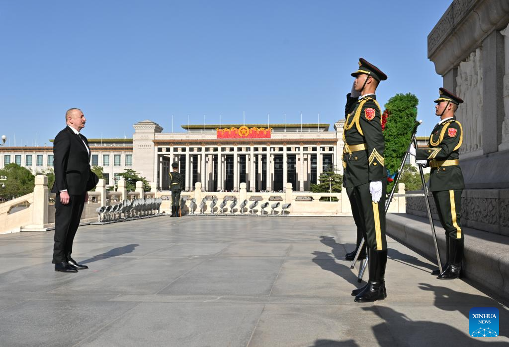 Azerbaijani president lays wreath at Monument to People's Heroes on Tian'anmen Square in Beijing