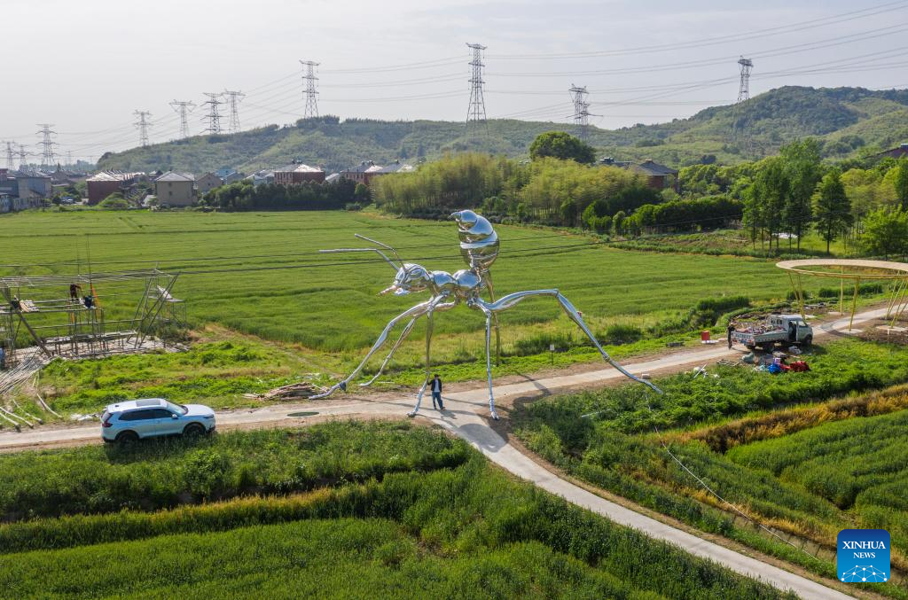 Taking the vast land as canvas and natural elements as medium, the artists skillfully integrated various art forms such as art installation and landscape art into the fields and villages, allowing tourists and local people to enjoy the art works in the countryside. (Xinhua/Xu Yu)