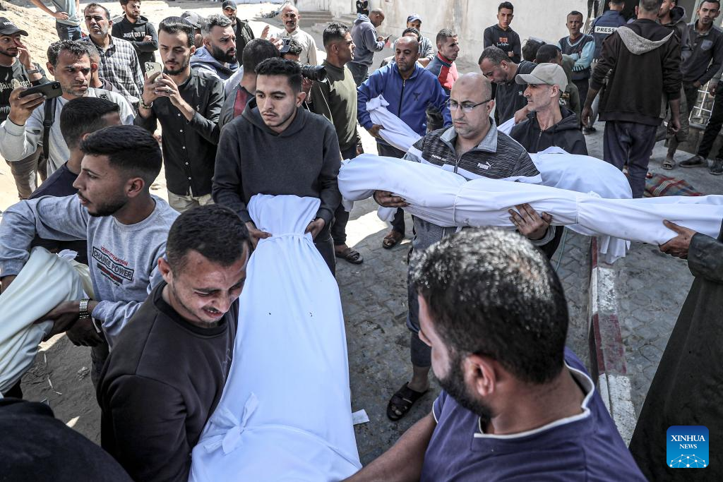 At least 34 Palestinians were killed and dozens of others wounded in airstrikes carried out by the Israeli army across the Gaza Strip on Saturday, Gaza's civil defense said. (Photo by Mahmoud Zaki/Xinhua)