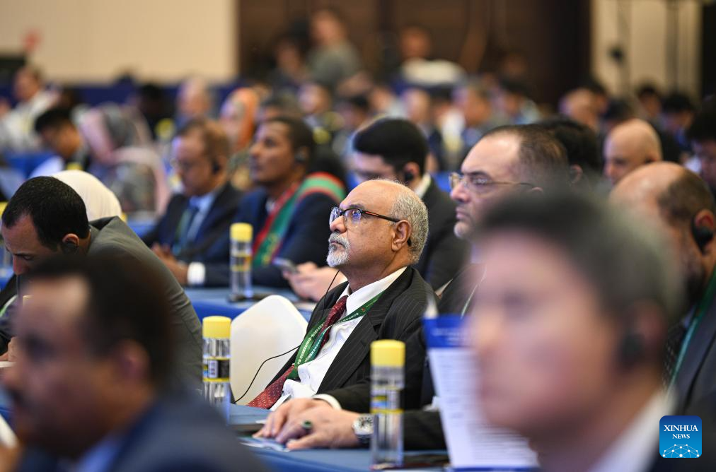 This photo taken on April 28, 2025 shows a scene of the opening ceremony of the 11th China-Arab Business Conference and the 9th Investment Seminar of the China-Arab States Cooperation Forum in Haikou, south China's Hainan Province. The conference was co-hosted by the China Council for the Promotion of International Trade, the People's Government of Hainan Province, the Secretariat of the Arab League, and the General Union of Chambers of Commerce, Industry & Agriculture of the Arab Countries. More than 1,000 representatives from domestic and international political and business circles attended the event. (Xinhua/Pu Xiaoxu)