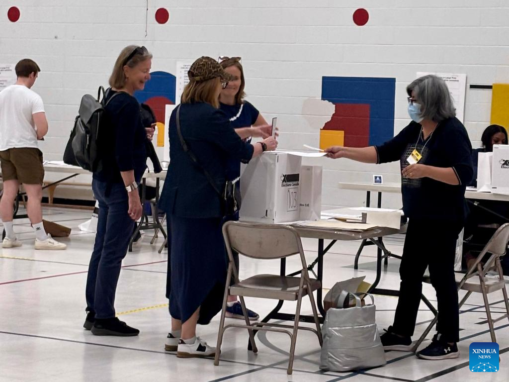 OTTAWA, April 28 (Xinhua) -- Millions of Canadians are lining up to cast their ballots on Monday as U.S. President Donald Trump weighed in on the election with a new threat of annexation of the country.