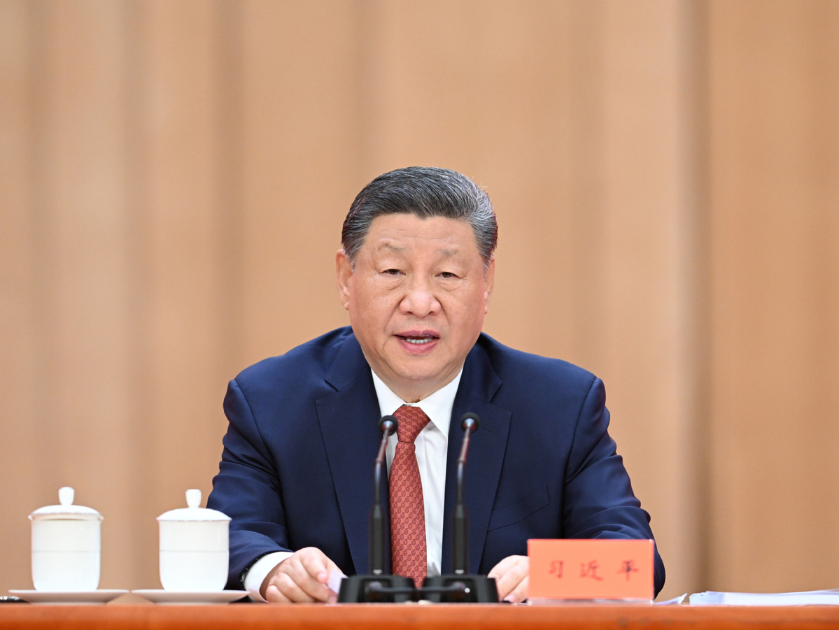 President Xi Jinping, also general secretary of the Communist Party of China Central Committee and chairman of the Central Military Commission, delivers an important speech at a grand gathering to celebrate the 100th anniversary of the founding of the All-China Federation of Trade Unions and honor model workers and exemplary individuals at the Great Hall of the People in Beijing, April 28, 2025. (Photo/Xinhua)