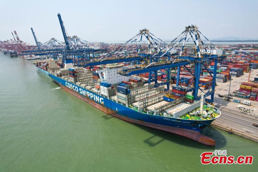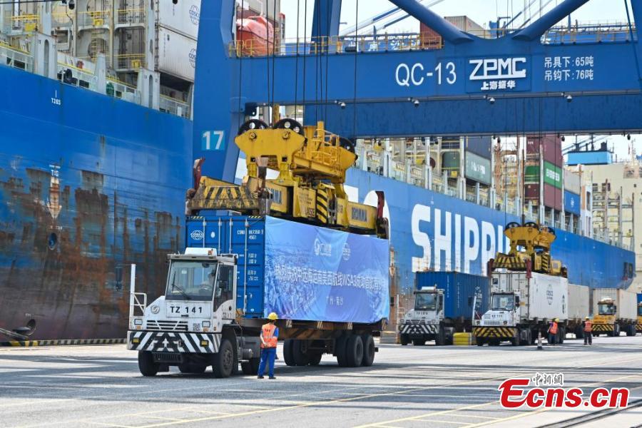 Guangzhou launched its first direct shipping route to the west coast of South America on Tuesday. The route will connect Guangzhou's Nansha Port with key ports in Latin America including Chancay Port in Peru, Manzanillo Port in Mexico and San Antonio Port in Chile.