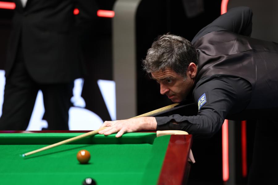 Ronnie O'Sullivan of England plays a shot during his quarterfinal against Si Jiahui of China. (Photo by Zhai Zheng/Xinhua)