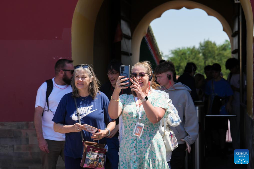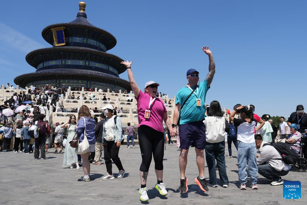Tourists from Australia visit the Tiantan (Temple of Heaven) Park in Beijing, capital of China, May 1, 2025. (Xinhua/Ju Huanzong)