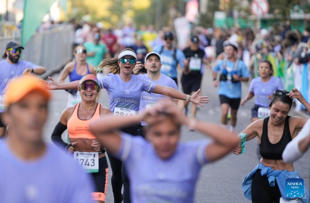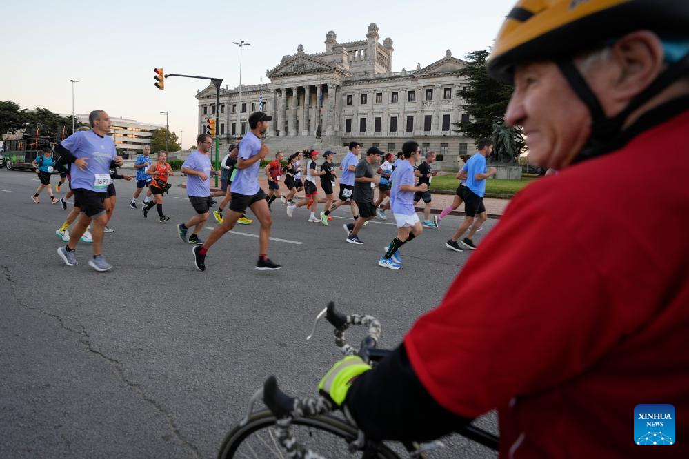 Athletes compete during the Montevideo Marathon in Montevideo, Uraguay, May 4, 2025. (Photo by Nicolas Celaya/Xinhua)