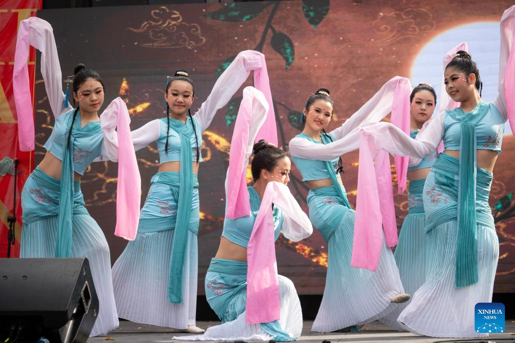 Performers present a traditional Chinese dance during the "China in Lujan" festival in Lujan, Argentina, on May 4, 2025. The festival, featuring typical Chinese music, traditional dance, tasty food and martial arts, was held here on Sunday. (Photo by Martin Zabala/Xinhua)