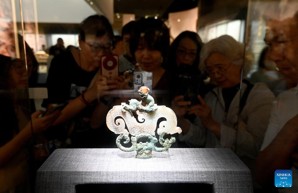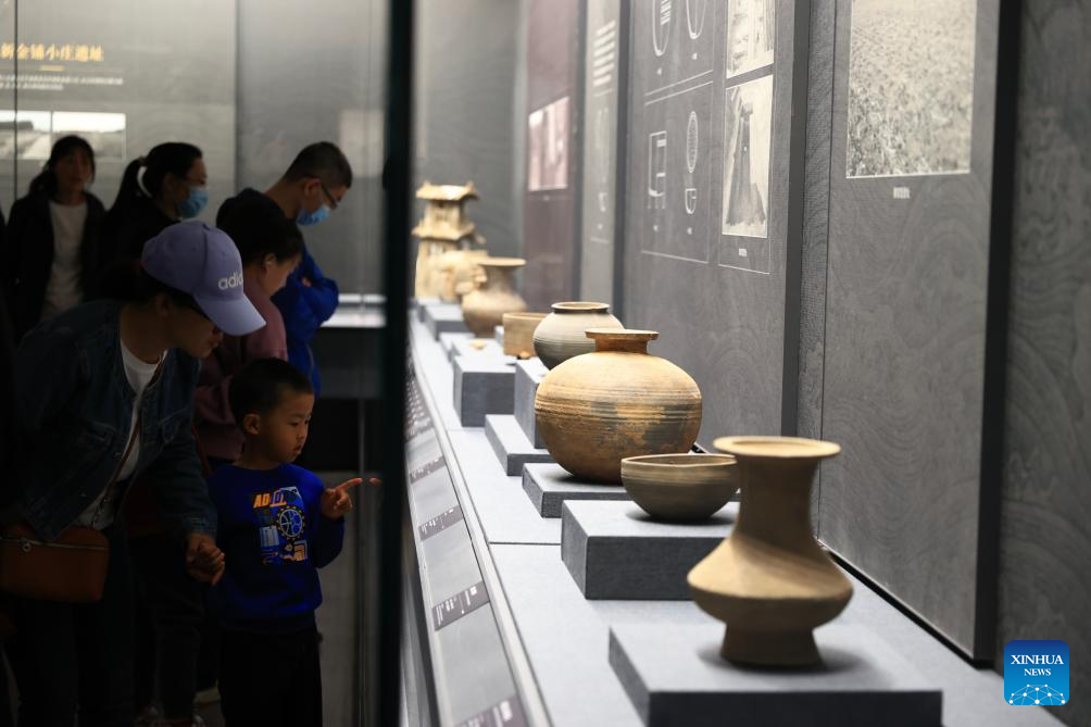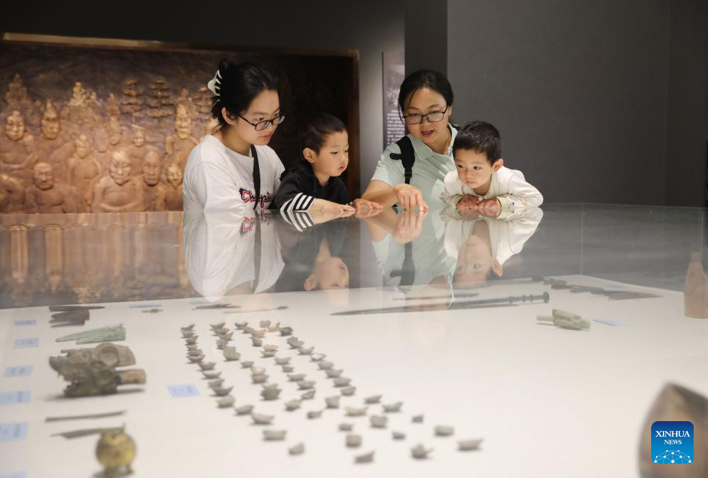 Visitors view an exhibit at Handan Museum in Handan, north China's Hebei Province, May 3, 2025. During the five-day May Day holiday, museums across China recorded more than 60.49 million visits, setting a new record and marking a 17 percent increase year on year. (Photo by Hao Qunying/Xinhua)