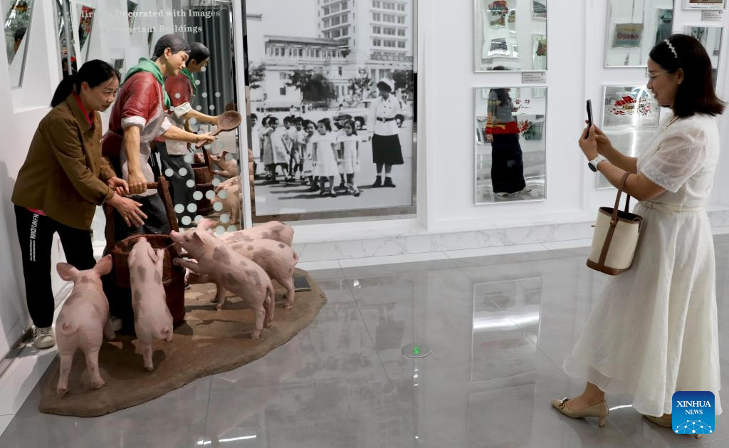 A visitor poses for photos at a museum in Guang'an, southwest China's Sichuan Province, May 5, 2025. During the five-day May Day holiday, museums across China recorded more than 60.49 million visits, setting a new record and marking a 17 percent increase year on year. (Photo by Liao Xiaobing/Xinhua)