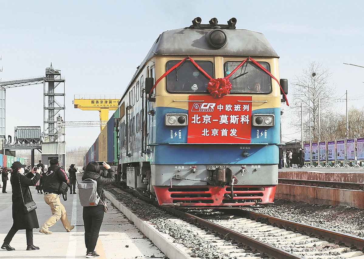 A freight train departs for Moscow, Russia from Beijing's Mafang Station in suburban Pinggu district. (Zou Hong/China Daily)