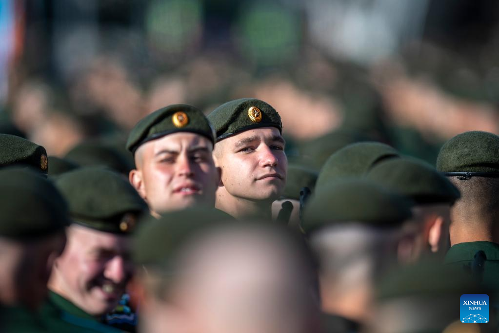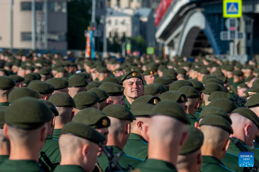 Soldiers prepare to attend a grand parade marking the 80th anniversary of the victory in the Soviet Union's Great Patriotic War in Moscow, Russia, May 9, 2025. (Xinhua/Bai Xueqi)