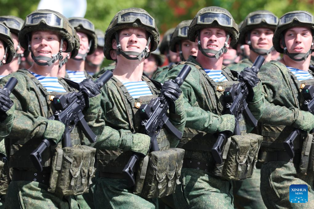 Soldiers attend a grand parade marking the 80th anniversary of the victory in the Soviet Union's Great Patriotic War in Moscow, Russia, May 9, 2025. (Xinhua/Ding Lin)