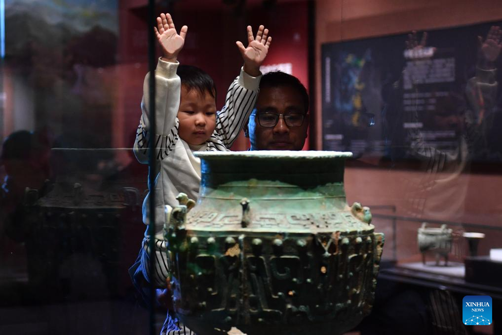 A child visits Yueyang Museum in Yueyang City, central China's Hunan Province, May 10, 2025. Yueyang Museum reopened to the public on Saturday after a temporary closure for renovation of space layout and exhibition area in the museum since Feb. 19, 2025. (Xinhua/Chen Zhenhai)