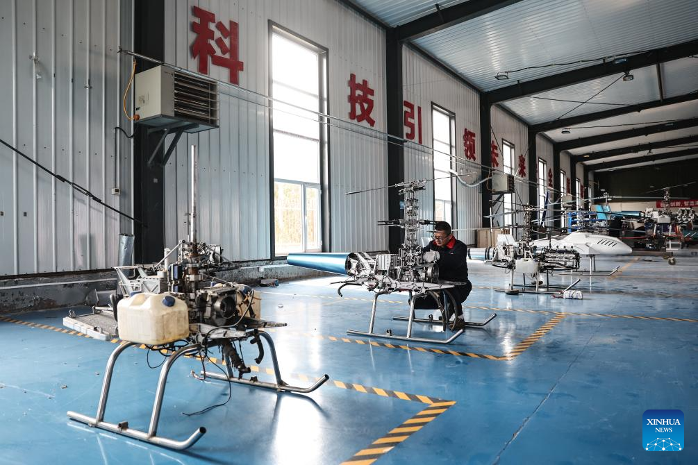 An engineer assembles an unmanned helicopter at a workshop of FaKu Zhong Jun Yi UAV Technology Co., Ltd. in Faku County, in Shenyang, northeast China's Liaoning Province, April 25, 2025.