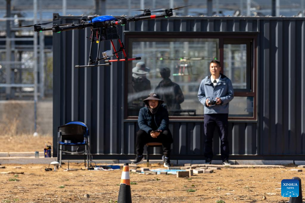 A trainee takes a practical drone training session at an enterprise in Shenbei New District, in Shenyang, northeast China's Liaoning Province, April 25, 2025.