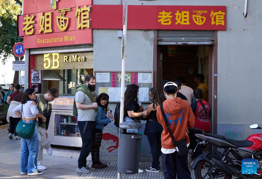 People line up outside a restaurant in the Chinatown in Buenos Aires, Argentina, May 10, 2025. In 2009, the archway of the Chinatown in Buenos Aires was officially completed. Nowadays, the Chinatown has become an important tourist attraction in the local area, attracting many people to experience the charm of Eastern culture. (Xinhua/Meng Dingbo)