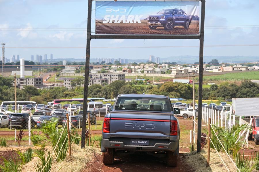 A BYD pickup truck conducts an off-road demonstration at an agricultural technology expo held in Sao Paulo, Brazil, April 29, 2025. (Xinhua/Chen Haoquan)