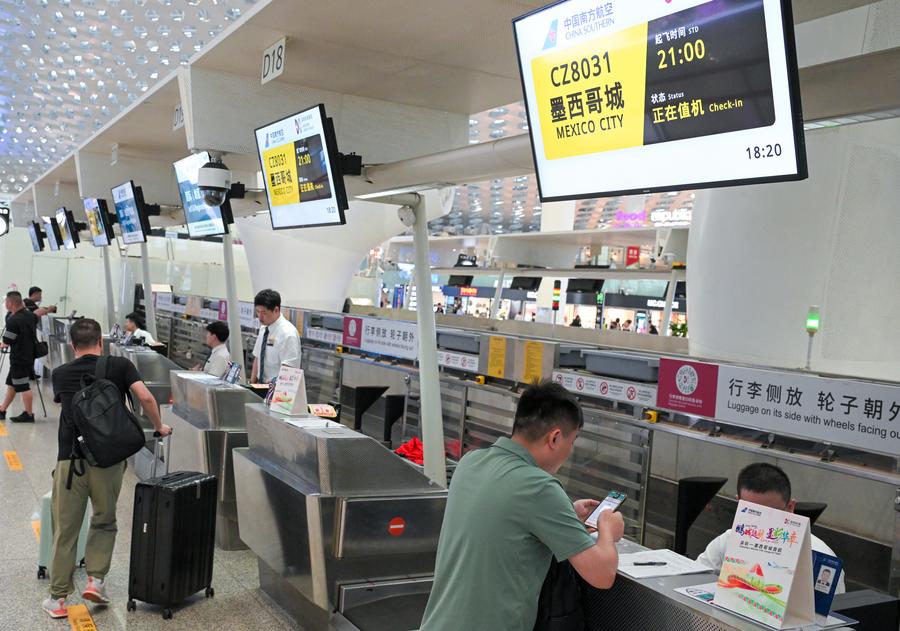 A passenger checks in for a flight to Mexico City at Shenzhen Baoan International Airport in Shenzhen, South China's Guangdong province, May 11, 2024. (Photo/Xinhua)