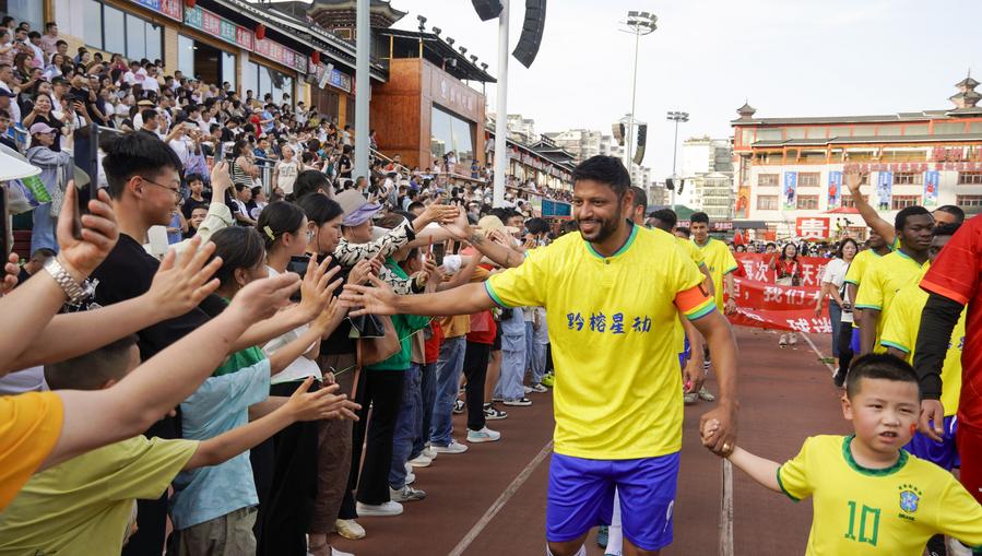 During the recent May Day holiday, a friendly match between football enthusiasts from Brazil and southwest China's Guizhou Province took place in Rongjiang County, the birthplace of the Village Super League.