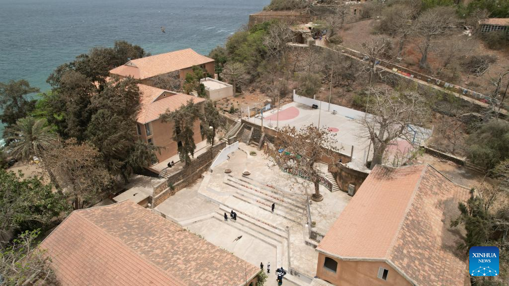 Aerial photo taken on May 7, 2025 shows the Mariama Ba Elite High School on Goree Island in Dakar, Senegal. (Xinhua/Si Yuan)