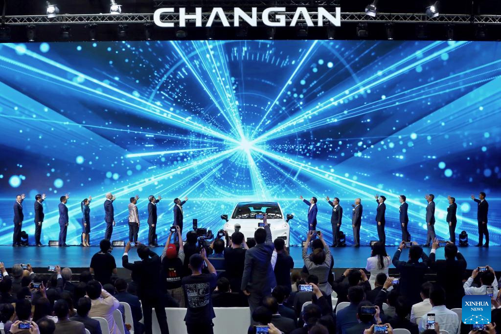 This photo taken on May 16, 2025 shows the roll-off ceremony of the 28.59 millionth vehicle of China's carmaker Changan Automobile in Rayong, Thailand. (Xinhua/Sun Weitong)
