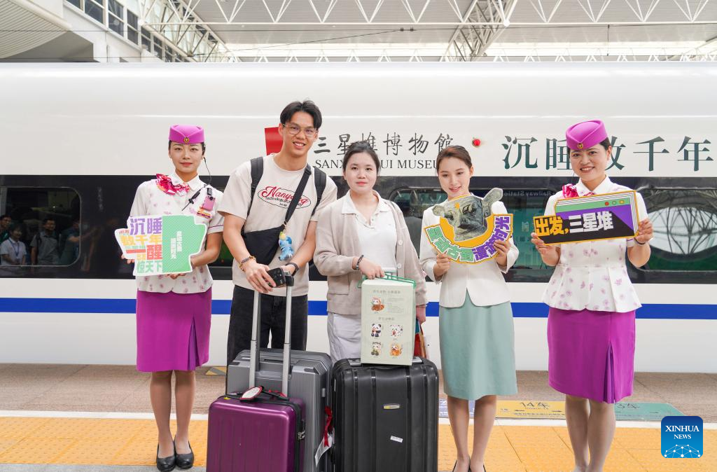 Sanxingdui-themed train put into operation in Chengdu
