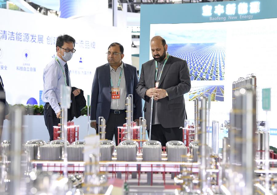 Guests learn about new energy facilities at the sixth China-Arab States Expo in Yinchuan, northwest China's Ningxia Hui Autonomous Region, Sept. 22, 2023. (Xinhua/Feng Kaihua)