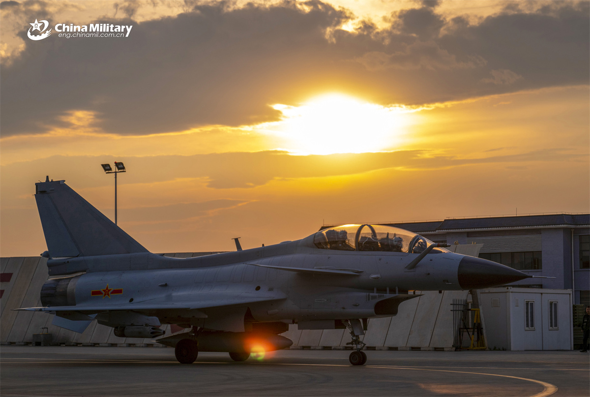J-10 fighter jets attached to an aviation brigade of the air force under the Chinese PLA Southern Theater Command take off in succession during a day-and-night flight training exercise. (eng.chinamil.com.cn/Shang Jieyan)