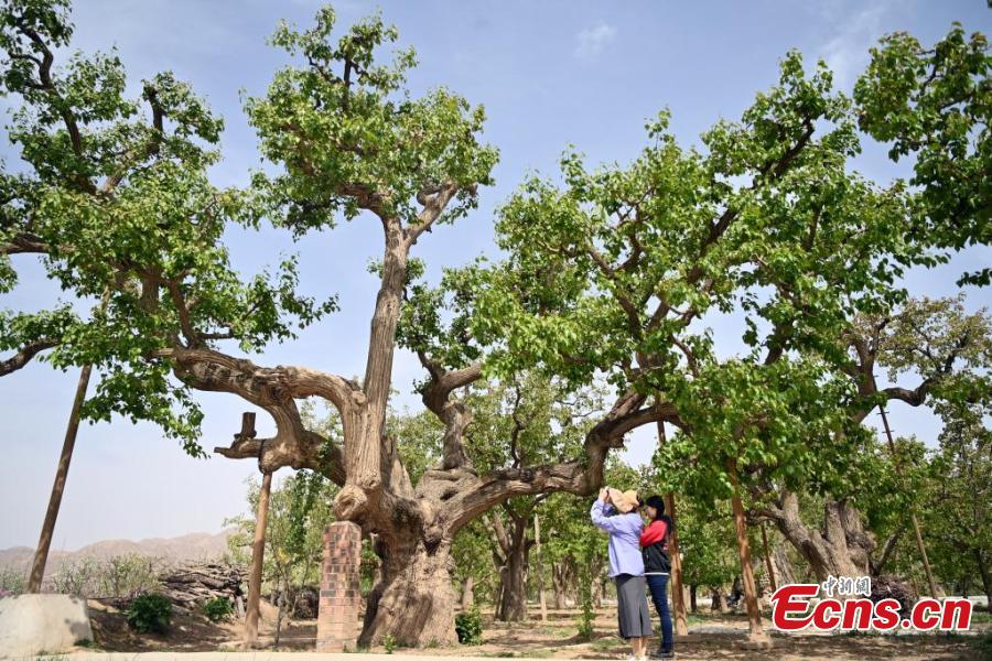 File photo taken on April 10, 2024 shows the Gaolan Shichuan Ancient Pear Orchard System inGaolan County of Lanzhou City, northwest China's Gansu Province. (Photo/China News Service)