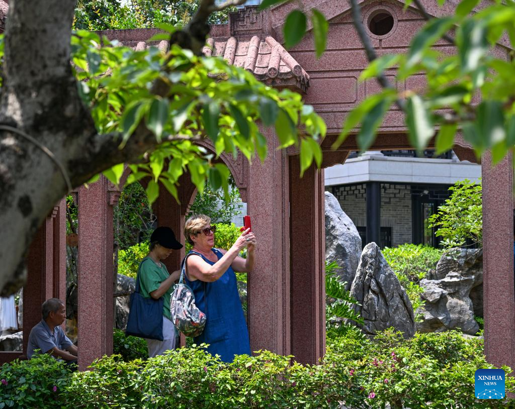 Tourists take a photo in the Yongqing Block, Guangzhou, south China's Guangdong Province, May 13, 2025. (Xinhua/Chen Shuo)
