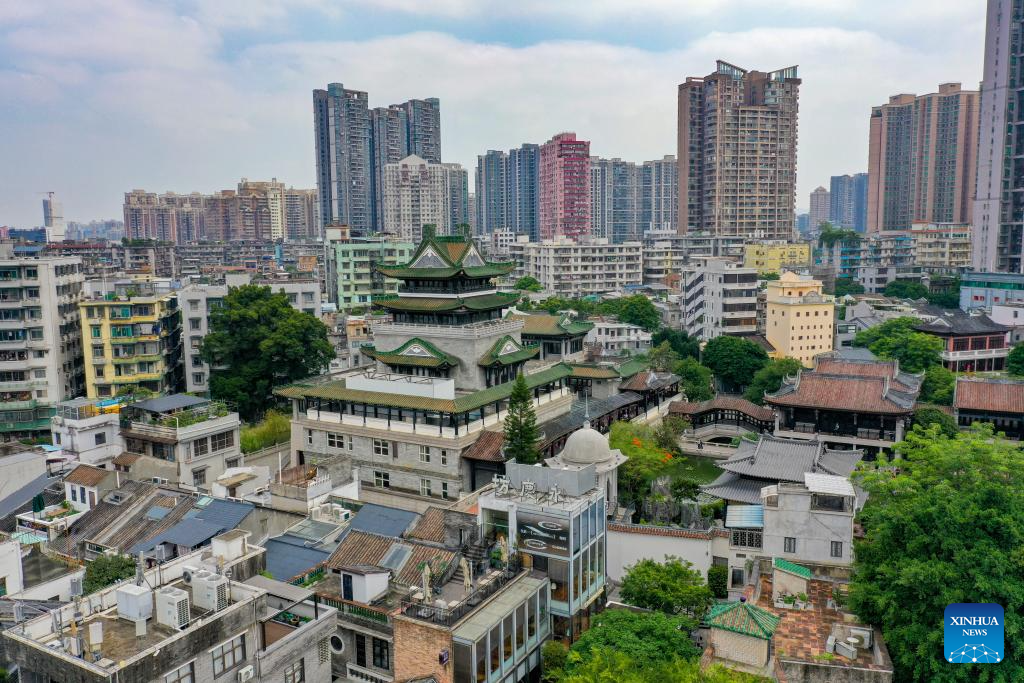 An aerial drone photo taken on May 13, 2025 shows a view of the Yongqing Block in Guangzhou, south China's Guangdong Province.
