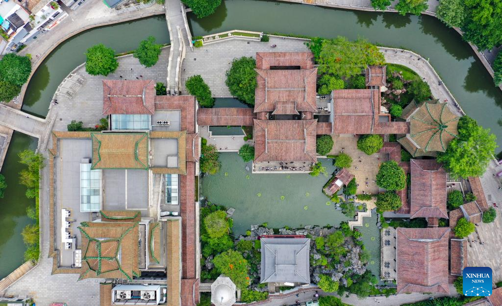 An aerial drone photo taken on May 13, 2025 shows a view of the Cantonese Opera Art Museum in the Yongqing Block, Guangzhou, south China's Guangdong Province. (Xinhua/Chen Shuo)
