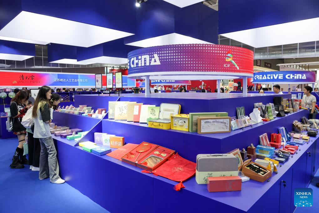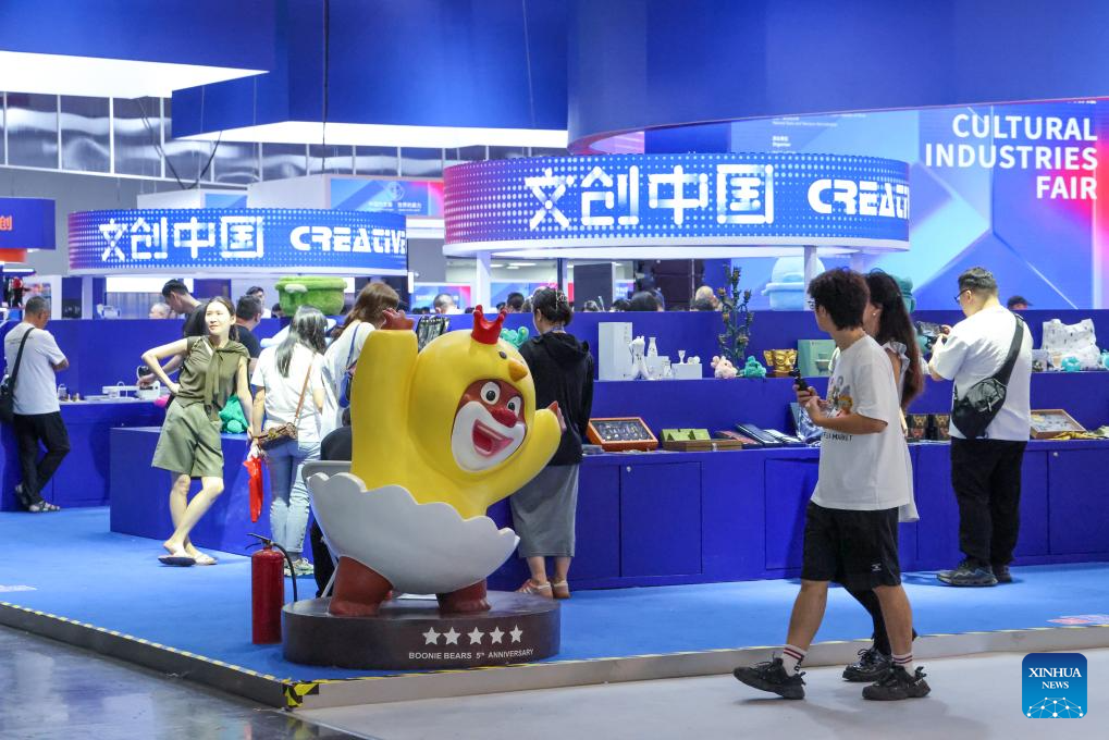 The five-day event is being held across eight exhibition halls -- three comprehensive spaces and five specialized areas. The specialized halls cover a broad array of fields, including international cultural trade, cultural tourism, art and design, film and gaming, and intangible cultural heritage. (Xinhua/Liang Xu)