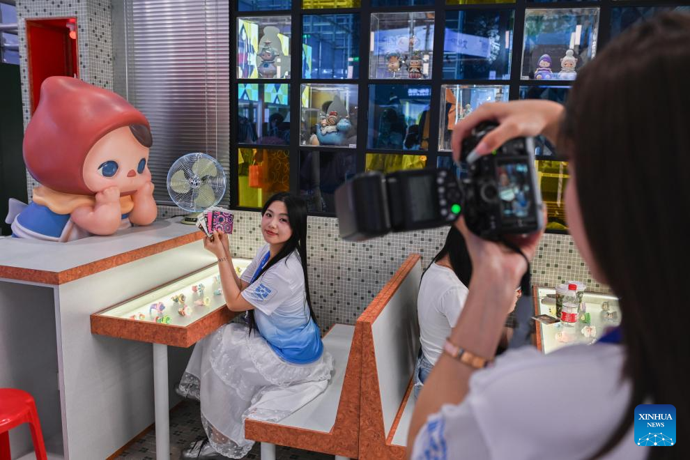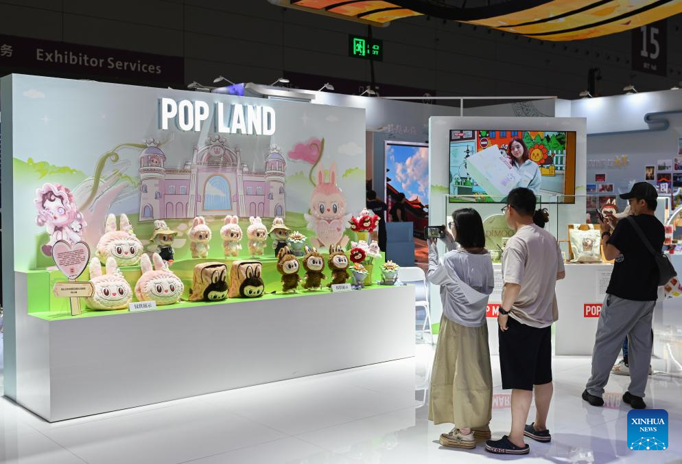 Visitors take photos of trendy toys at the POP LAND of the Beijing exhibition zone during the 21st China (Shenzhen) International Cultural Industries Fair in Shenzhen, south China's Guangdong Province, May 24, 2025. The 21st China (Shenzhen) International Cultural Industries Fair opened Thursday in the southern Chinese metropolis of Shenzhen, offering an artificial intelligence (AI) exhibition area for the first time.