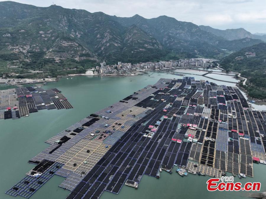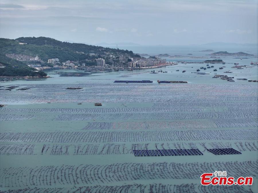 Ocean ranch floats in Dinghai Bay, Lianjiang County, east China's Fujian Province, May 27, 2025. (China News Service/Zhang Bin)