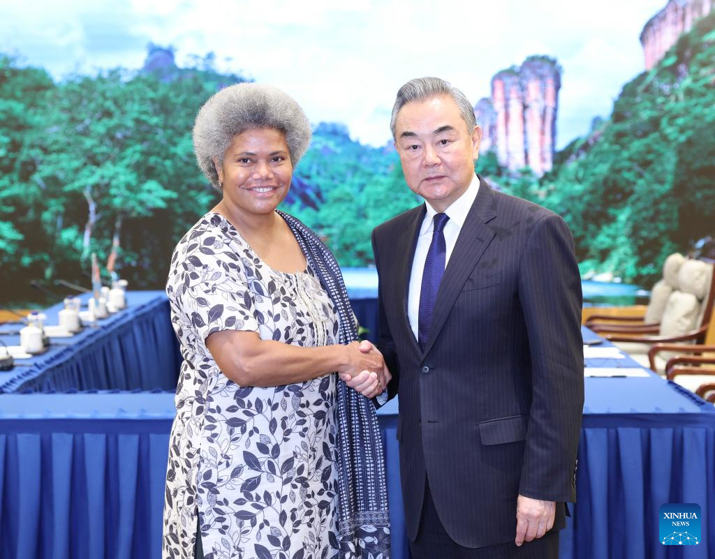 Wang also met with Nauru's former President and current Deputy Minister for Foreign Affairs and Trade Russ Kun, Fiji's Assistant Minister for Foreign Affairs and Deputy Speaker of the Parliament Lenora Qereqeretabua, and the Pacific Islands Forum's Deputy Secretary General Esala Nayasi.