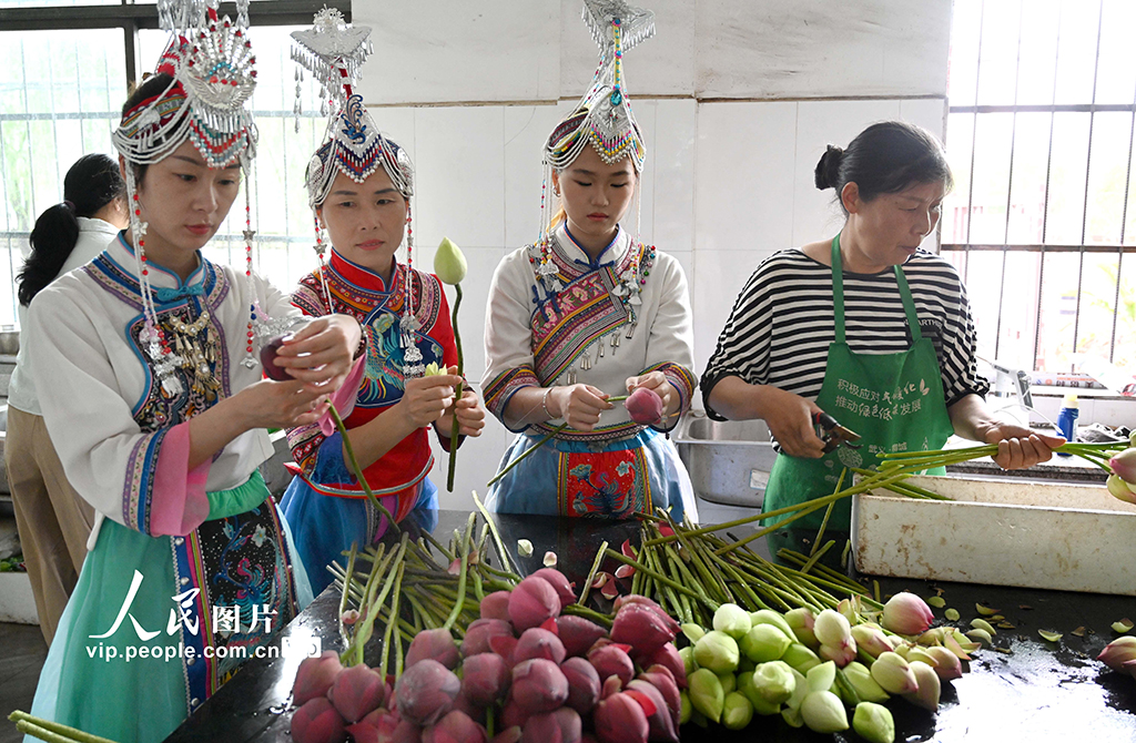 Staff from the Shili Lotus Common Prosperity Workshop in Wuyi county, Jinhua, east China's Zhejiang Province, harvested fresh-cut lotus flowers in the paddies and prepared them for delivery on June 2.